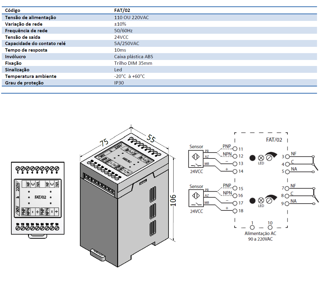 São fontes de alimentação para sensores indutivos, capacitivos e fotoelétrico com saída NPN ou PNP que possuem internamente um temporizador de 0,01 à 30 segundos. Este temporizador pode ser programando de dois modos: