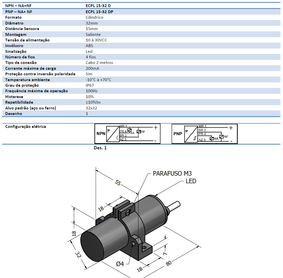 Corrente Contínua: NPN – PNP – 4 fios Ø32 Liso